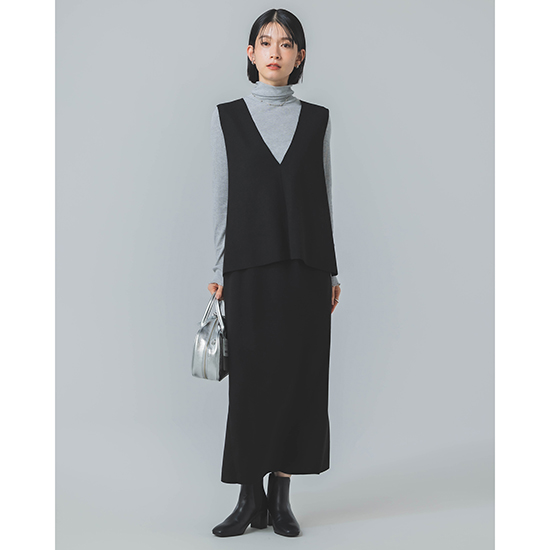 "[Dignite collier]【洗える】 リブニットドッキングワンピース"