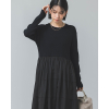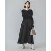 上半身はリブニット、スカート部はボリュームある布帛で仕上げたドッキングワンピース。<br />