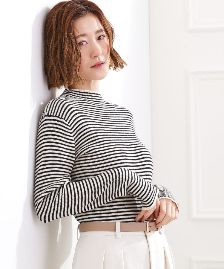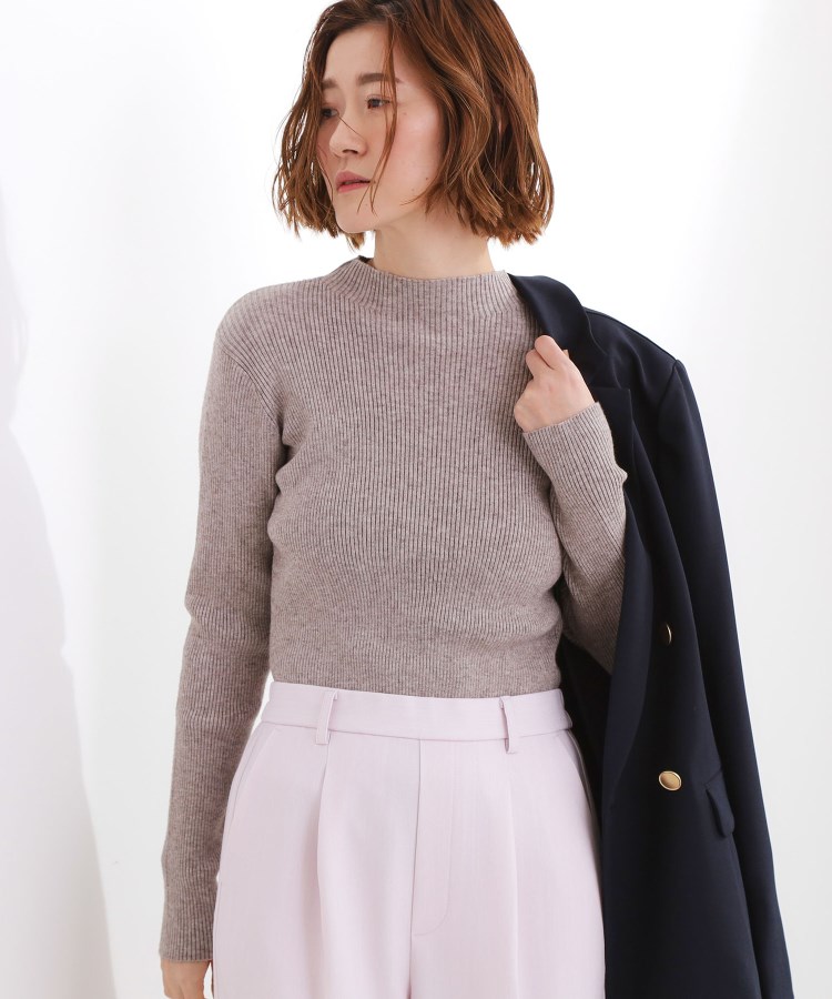 しなやかに身体に沿い、日常に溶け込むベーシックリブニット。【デザイン】シンプルで着回しやすいベーシックリブインナー。詰まりすぎないプチハイネックデザインで、首元はリンキングなしの編み続き仕様。身体に沿うフィット感で、単体でもインナーとしても美しいシルエットを保ちます。【素材】レーヨン混の糸を使用。柔らかくもっちりした肌触りで、着心地が心地よく、手放せなくなる一枚です。【スタイリング】ジャケットやブラウスのインナーに最適。カーディガンやニットとのレイヤードにもすっきり収まり、デイリーからお仕事まで幅広く活躍します。※製品寸法は平置きのスペックとなっております。こちらの商品は伸縮性があります。※照明の関係により、実際よりも色味が違って見える場合があります。また、パソコン・スマートフォンなどの環境により、若干製品と画像のカラーが異なる場合もございます。