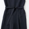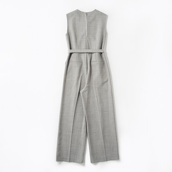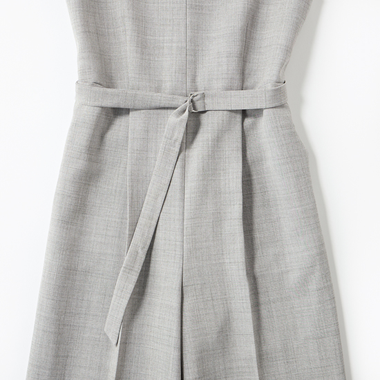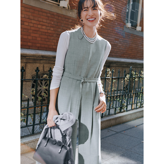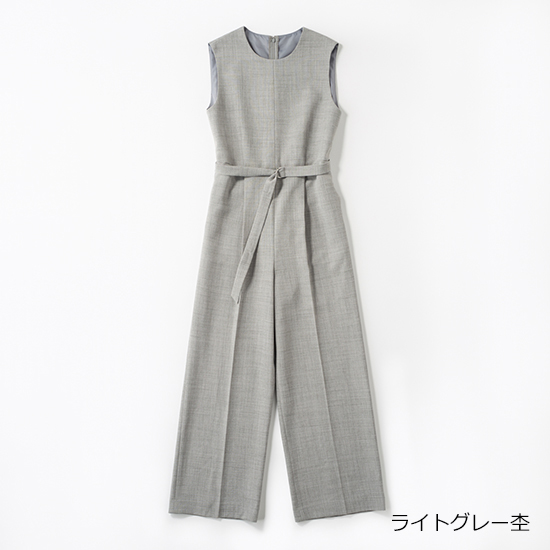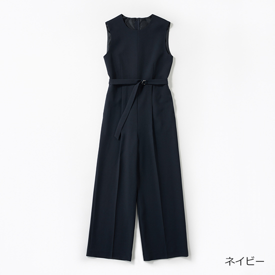 トレンド感を両立。パンツがストレートシルエットのオールインワンは、共布ベルト