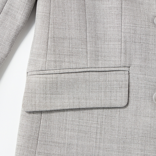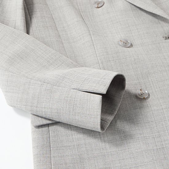 素材は、春から初夏・初秋から秋まで活躍する中肉素材。さらりとした手触りで、杢調の表情が無地ながら奥行きのある印象に。