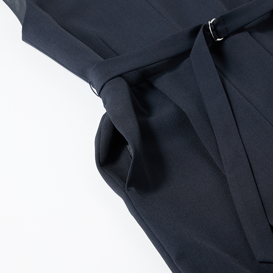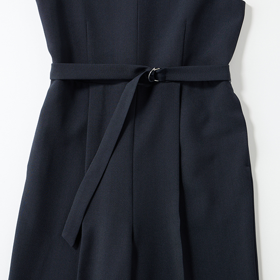 共布ベルト付きでウエストマークができ、自然なスタイルアップが叶います。