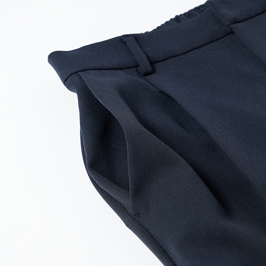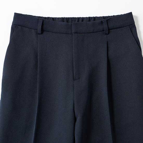 足首をすっきり見せ、抜け感のある着こなしが叶います。前ファスナー&ウエスト後ろゴム仕様で、長時間でも快適な穿き心地です。