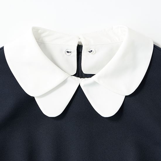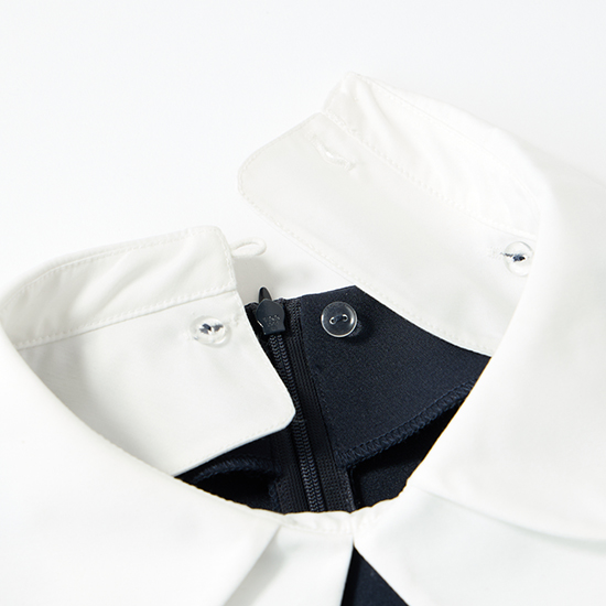 花びらのようなフォルムの衿はボタンで取り外し可能。