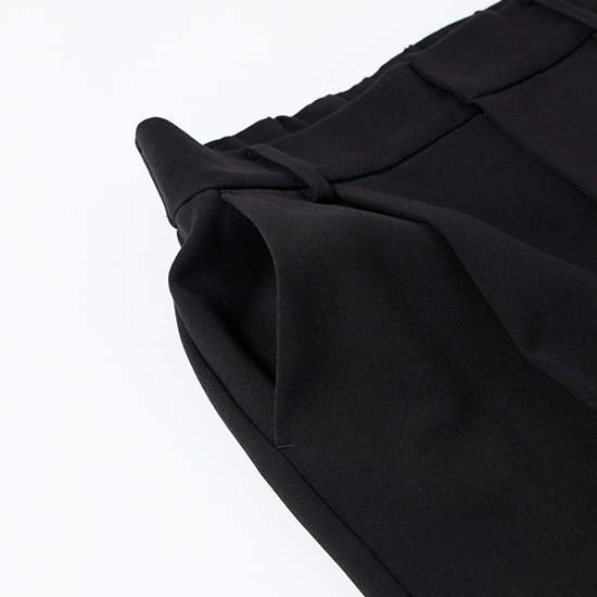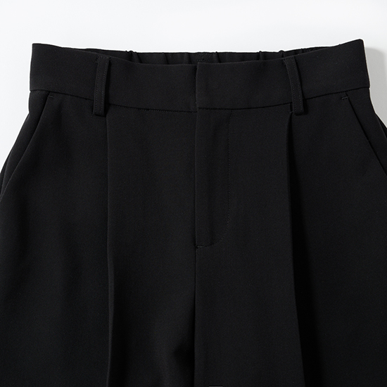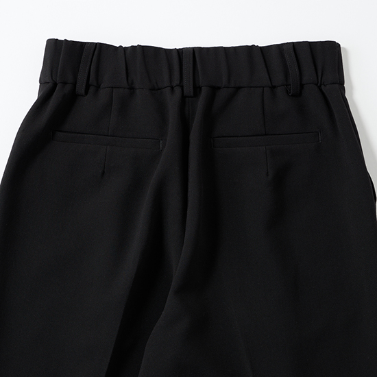 前ファスナー&ウエスト後ろゴム仕様で、きれい見えとラクな穿き心地を両立しています。