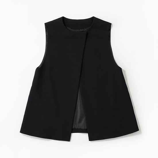 ジレはシンプルながらも存在感があり、両脇ポケット付きで実用性も◎。