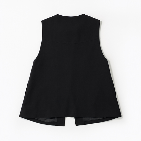 ブラウスの衿はジレと完璧にマッチするよう計算されており、セット売りならではの完成度の高さが光ります。