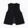 アシンメトリーデザインのハンサム黒ジレと、ほんのり甘めのフリルスタンド衿がポイントの白ブラウス、黒ワイドパンツが揃った3点セット。