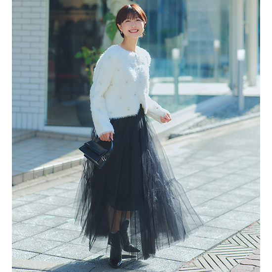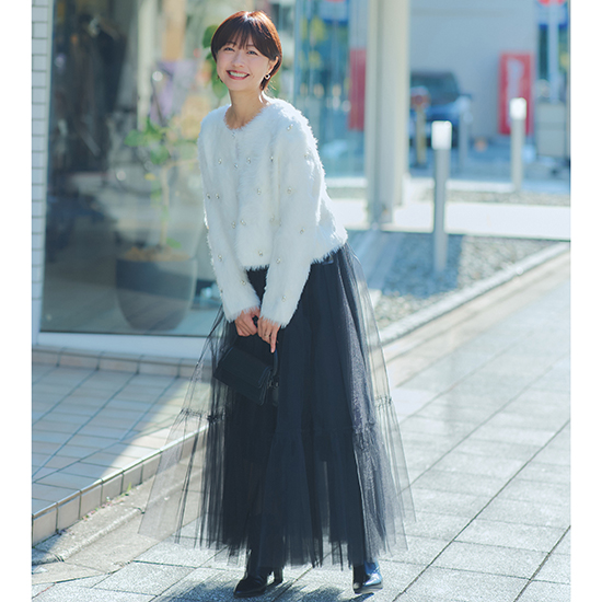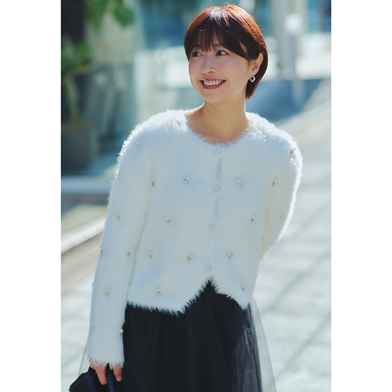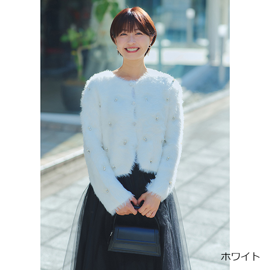 程よいビジューがアクセントのカーディガンです。手洗い可能です。