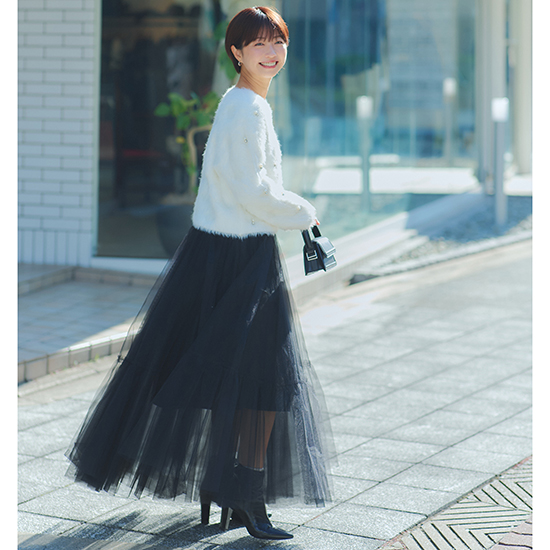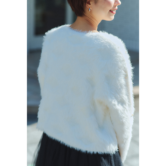 着心地のいいシャギーニットのカーディガンです。