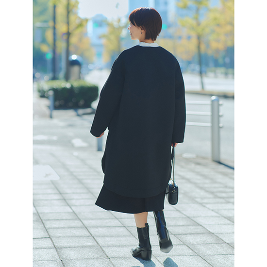 <p><font color=#c31941 size=3>大人の可愛さを引き出してくれるフリルポケットコート</font><br><br>もちもちとした弾力のあるダンボールニット生地を使用。<br>軽くて暖かく、体のラインを優しく包みます。<br>程よいハリと肉感があり、きちんと感もキープ。<br>また、シワになりにくいのも嬉しいポイントです。</p>