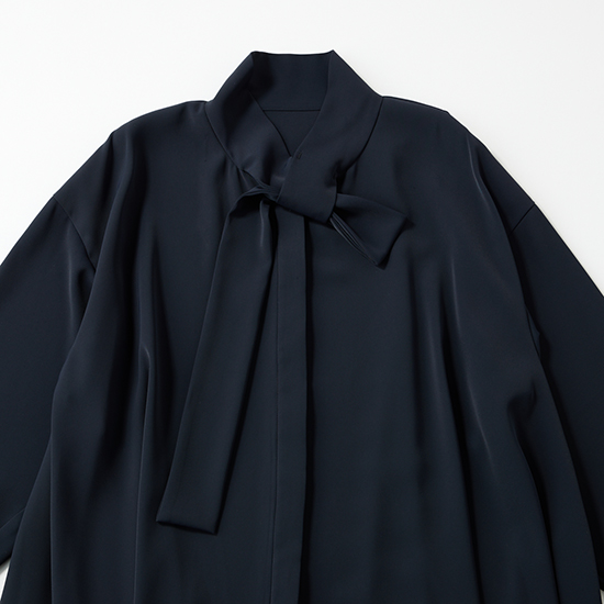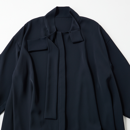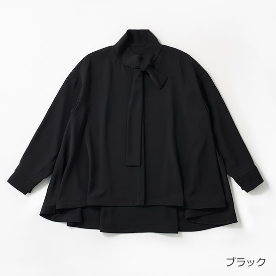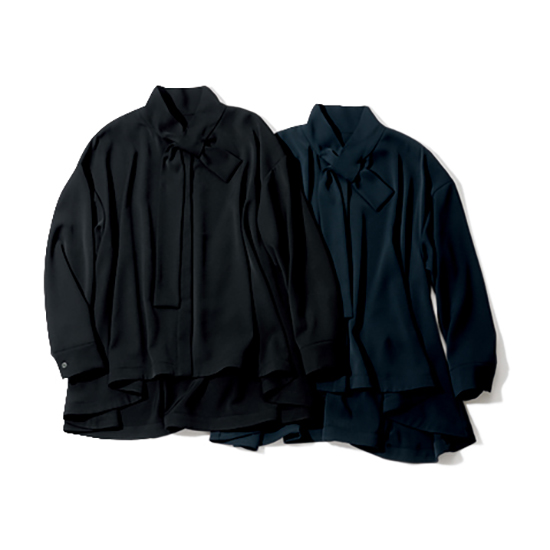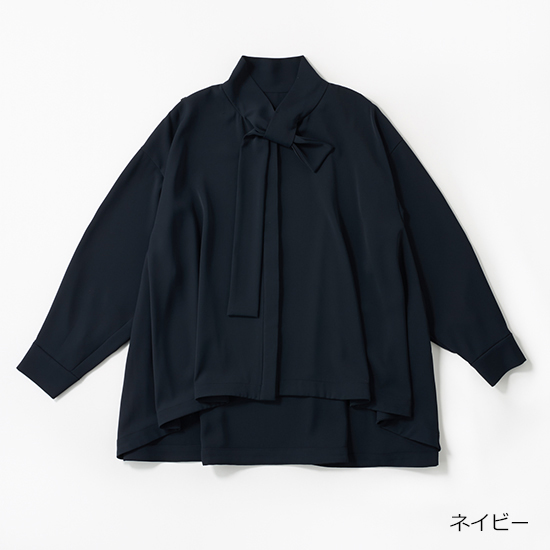 結ぶ手間がいらないボウタイで、顔まわりが華やぐブラウス