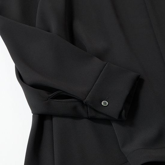 素材は、シワになりにくいダブルクロス素材を使用。長時間の式典や移動が多い日でも美しい状態をキープでき、ご自宅で手洗い可能なのも嬉しいポイントです。