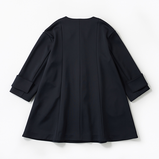切り替え位置にこだわり、羽織ったときに自然とAラインがきれいに出るシルエットに設計。