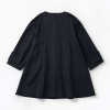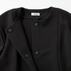 ノーカラーデザインだから中に着るアイテムの衿の形を選ばず、洗練された印象に。