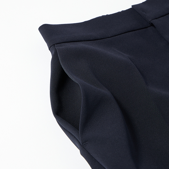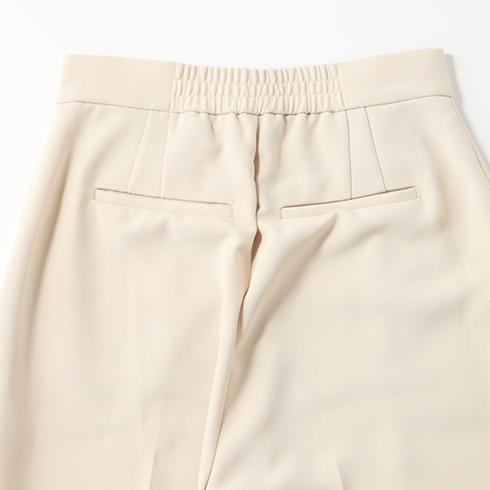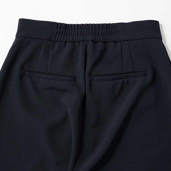 後ろウエストはゴム仕様で、見た目の美しさと快適な着心地を両立。