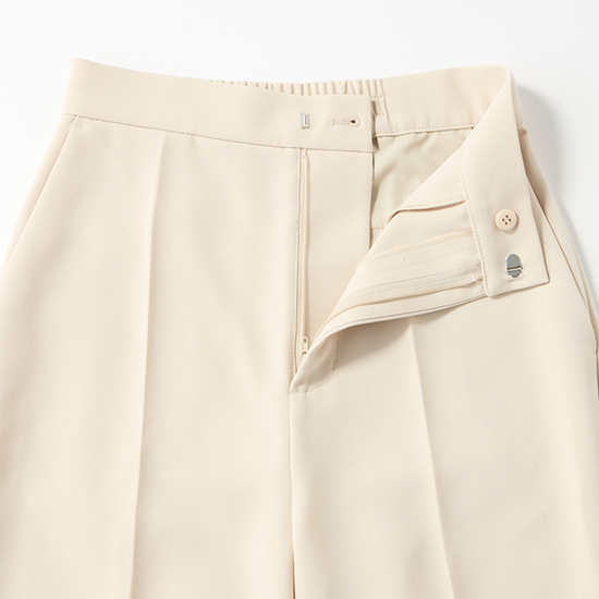 ウエストは後ろのみゴム仕様にすることで、見た目はきちんと、穿き心地はやさしく仕上げています。