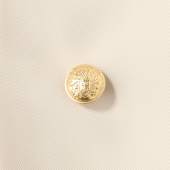 フロントの高めの位置のゴールドボタンは脚長効果も◎
