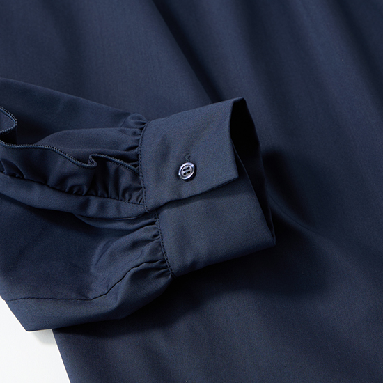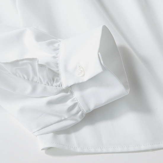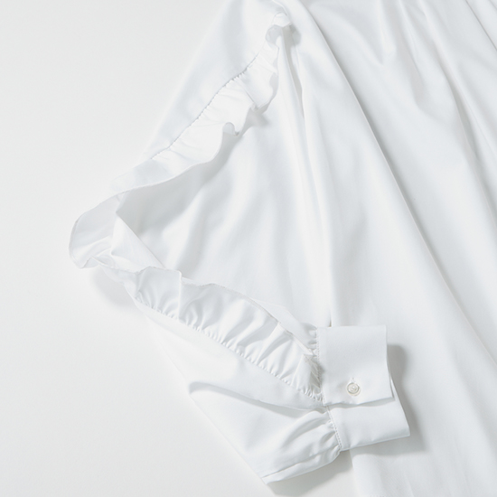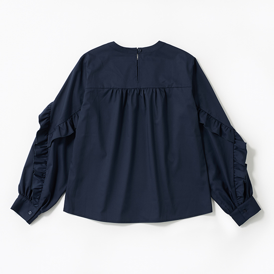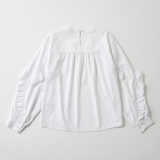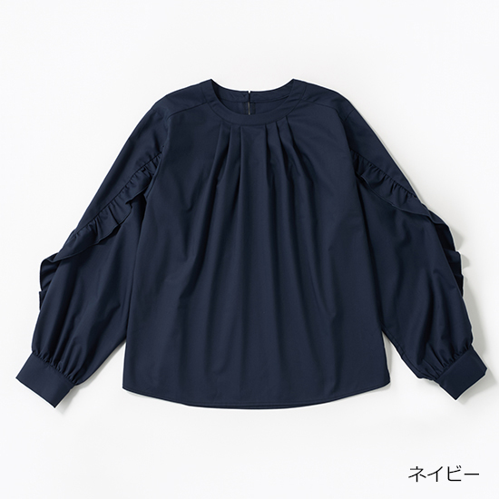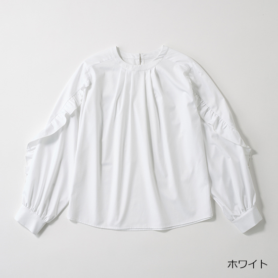 袖にあしらわれたラッフルが立体的な動きを生むブラウス。