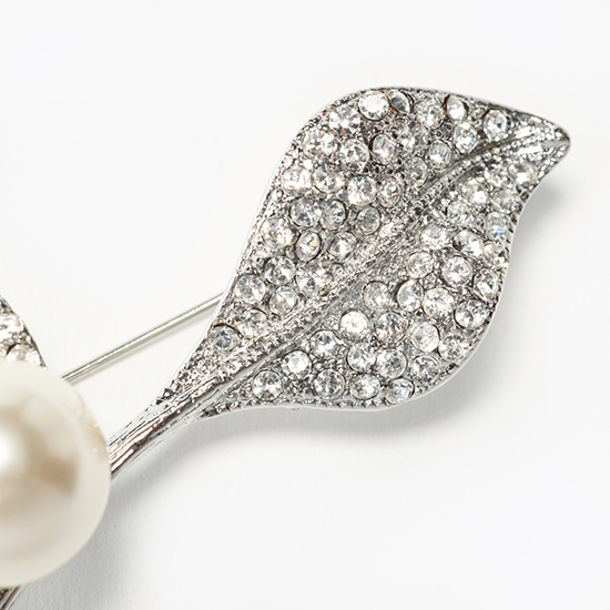 リーフモチーフにパールを組み合わせた、優雅で女性らしいデザイン。