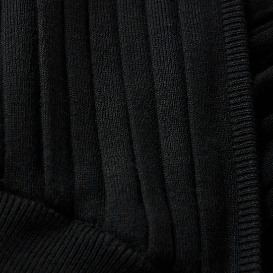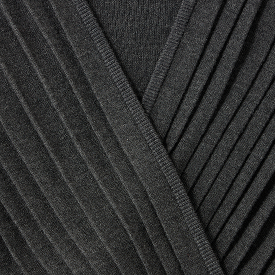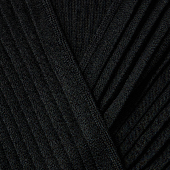 前身部分は、生地を自由に形作ることができる横編みならではのプリーツ編みを使用。