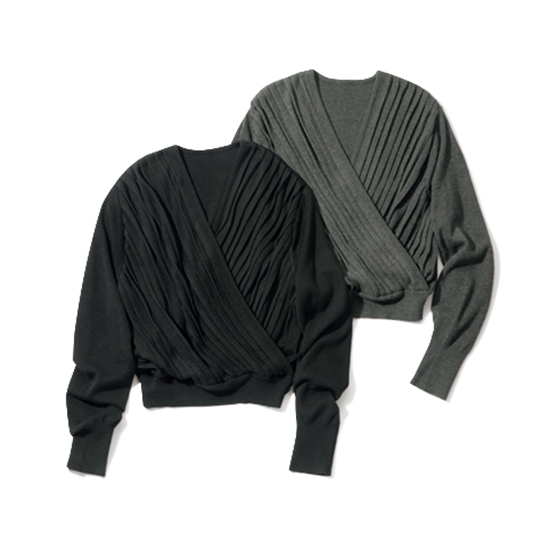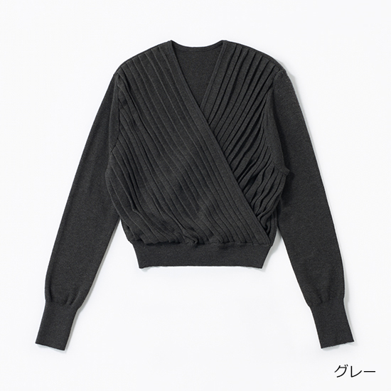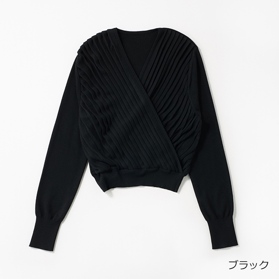 プリーツデザインが特徴のカシュクールニットトップス。