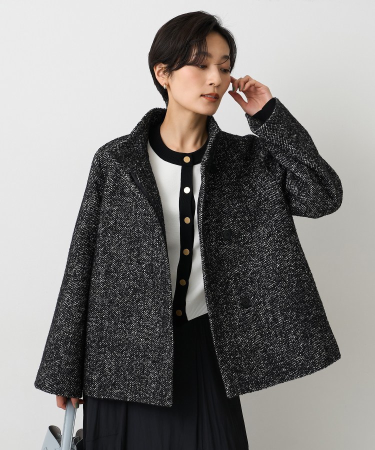 【ツイード風/スタンドカラー】ファンシーヘリンボンコート