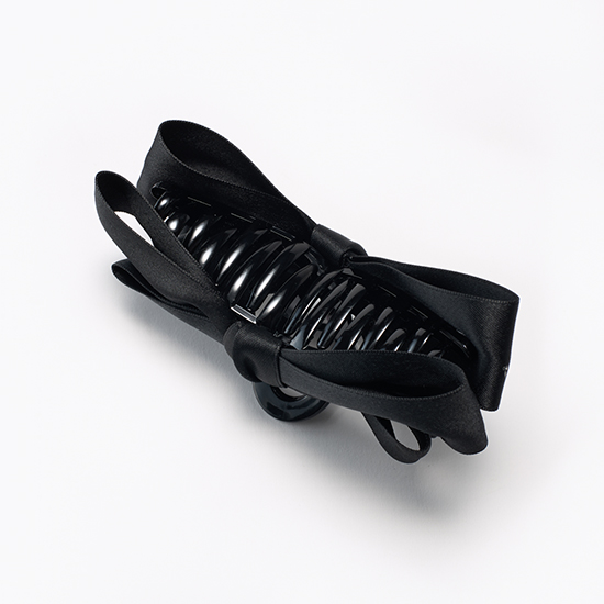 ブラックサテンリボンをあしらったヘアクリップ。シンプル派におすすめのアイテムです。