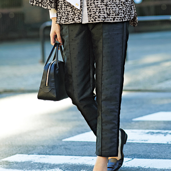 <p><font color=#c31941 size=3>もうコーデに悩まない!<br>華やぎセットで式でも仕事でも垢抜ける</font><br><br>縦ラインを強調するセンターシームが脚をほっそり見せてくれます。<br>光沢のあるジャカード素材は卒入学だけでなく、結婚式などフォーマルシーンでも使えて万能。<br><br>【POINT】<br>・無地見えするドットがシャレ感を高める<br><br><font size="3">BeBeoD(ベベッド)</font><br>上品で大人可愛いをコンセプト。<br>甘いだけじゃない、遊び心もある洋服は熱烈的なファンも多い。<br><br>撮影/須藤敬一(モデル)、清藤直樹(静物)<br>モデル/徳澤直子[身長:170cm]、ヘア・メーク/川村友子<br>スタイリスト/中西雛乃(Ash.)</p>