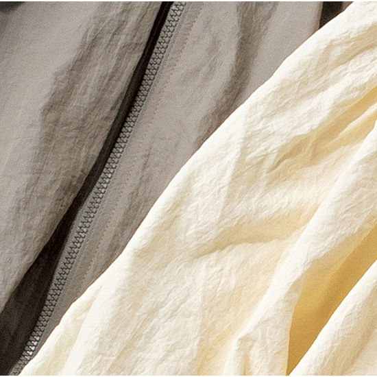 軽量なナイロン素材を使用。春先の羽織として重宝します。裾をバルーン状にすることで、あらゆるパンツに好相性です。