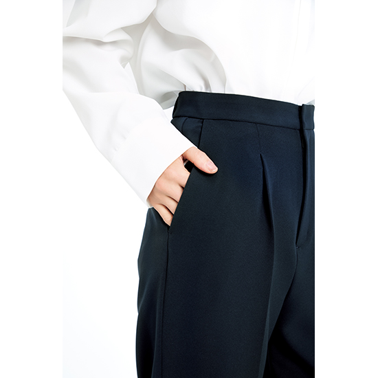 セレモニーでも着まわせるようにシンプルだけど様になる美脚も叶えるパンツです。