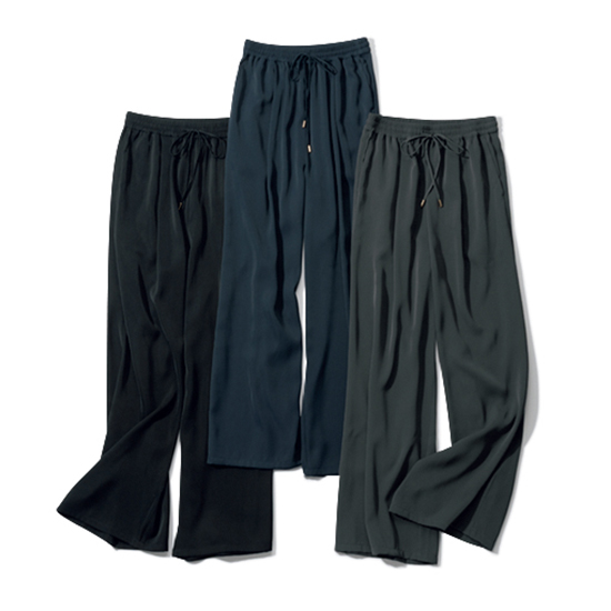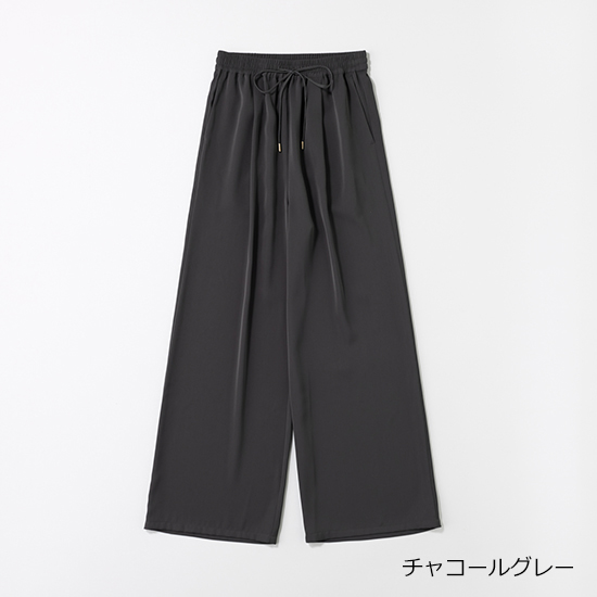 <p><font color=#c31941 size=3>ラクな穿き心地と上品さを両立<br>毎日にちょうどいいきれいめワイド</font><br><br>VERY STORE コラボ商品。<br>エマテイラーで大人気の同素材の<br>バックジップロングスリーブTブラウスと<br>セットアップ着用が可能なパンツを作ってもらいました!<br><br>落ち感のあるとろみ素材を使用したきれい見えが叶う<br>ワイドパンツ。マットで清涼感のある生地が、<br>イージーパンツでありながら上品な印象を演出します。<br><br>ウエストは総ゴム仕様で着脱しやすく、<br>長時間の着用でもストレスフリー。それでいて、外からは<br>ゴム仕様が分かりにくいデザインになっているのがポイントです。<br>ウエストタックと切替によって程よいゆとりを持たせ、<br>脚のラインを拾いにくいシルエットに仕上げています。<br><br>同素材のバックジップロングスリーブTブラウスと<br>セットアップが可能で、セミオケージョンなど<br>きちんと感が求められるシーンにも対応。<br>ジャケットやシャツを合わせれば通勤や学校行事に、<br>Tシャツを合わせればデイリーカジュアルにも活躍します。<br><br>家庭洗濯可能で、季節を通して長く愛用できる一本です。<br><br>【POINT】<br>・マットで清涼感のある素材を使用。<br>・ウエストは総ゴム仕様でストレスフリー。<br>・体のラインを拾いにくいゆったりシルエット。<br><br><font size="3">Emma Taylor(エマテイラー)</font><br>キレイめスタイルを軸に、着心地や機能性にも配慮した服作りが支持される<br>ブランド。日常からきちんとした場面まで対応できるデザインと、手に取り<br>やすい価格、リアルさが魅力。<br><br>撮影/川﨑一貴(ajoite)(人物)、坂根綾子(静物)、モデル/笹川友里<br>ヘア・メーク/福川雅顕、スタイリング/平沼洋美、ディレクション/嶺村真由子</p>
