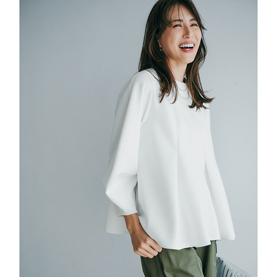 <p><font color=#c31941 size=3>着心地はカットソー<br>見た目はきちんと服の優秀トップス</font><br><br>VERY STORE コラボ商品<br><br>表面感の美しいダンボール素材を使用し、<br>着心地の良さときちんと感を両立したプルオーバーです。<br>ポリウレタンを10%含んだふっくらとした素材で、<br>体のラインを拾いにくいのも特徴。<br><br>フロントの切替とタックによるフレアシルエットが、<br>自然にウエストラインを美しく演出。<br>袖口にはボリュームのあるランタンスリーブを採用し、<br>フェミニンな立体感をプラスしています。<br>背中には金属ファスナーを配し、<br>後ろ姿までサマになるデザインに。<br><br>ネイビーは同素材のテーパードパンツとセットアップが可能で、<br>入卒園・学校行事・お仕事などきちんとしたシーンにも対応。<br>カジュアルなボトムと合わせればデイリーにも着回せます。<br><br>シワになりにくく、手洗い可能な点も嬉しいポイントです。<br><br>【POINT】<br>・デイリーにも使えるモチモチトップス<br>・カットソーの快適さときちんと感を両立。<br>・ランタンスリーブと背中のファスナーがアクセントに。<br><br><font size="3">ALEGRE(アレグレ)</font><br>忙しい毎日のなかでも無理なく着られて、きちんとした場面にも対応できる設計が<br>支持されるブランド。VERY世代の学校行事やお仕事、日常まで幅広く活躍するワードローブを提案。<br><br>撮影/川﨑一貴(ajoite)(人物)、坂根綾子(静物)、モデル/笹川友里<br>ヘア・メーク/福川雅顕、スタイリング/平沼洋美、ディレクション/嶺村真由子</p>