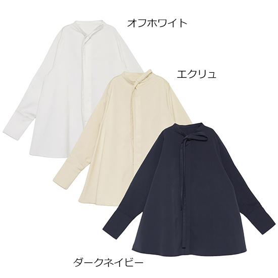 裾へ向かって流れるように広がるフレアラインが、美しく立体的なシルエットを生むブラウス。
