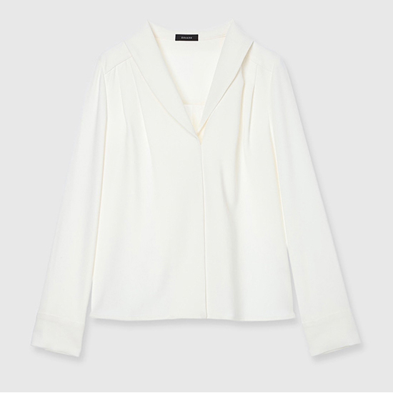 ・ブラウスのヨーク部分に施されたタックがエレガントな立体感を演出。