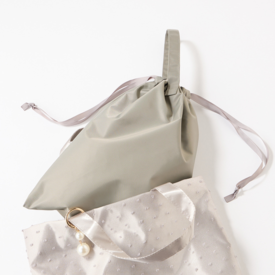 ・シューズを収納できる巾着バッグに加え、パールチャームも付属。