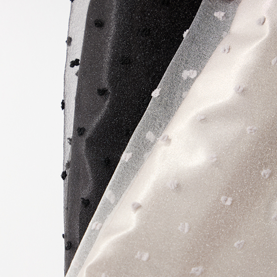 透け感のあるオーガンジー素材に上品なドット柄をあしらい、華やかさをプラス。