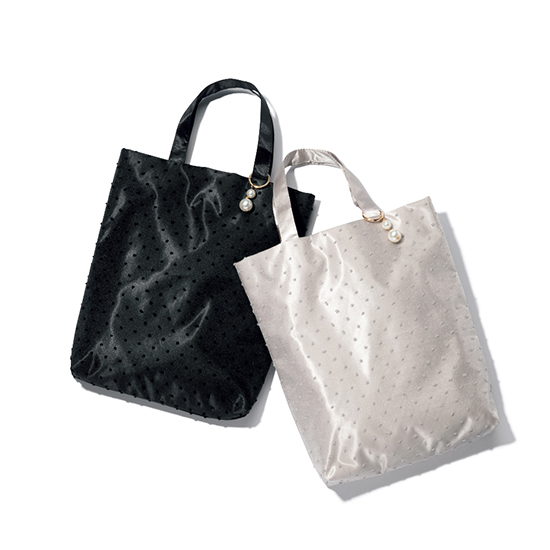 ・透け感のあるオーガンジー素材に小粒のドットをあしらったトートバッグ。