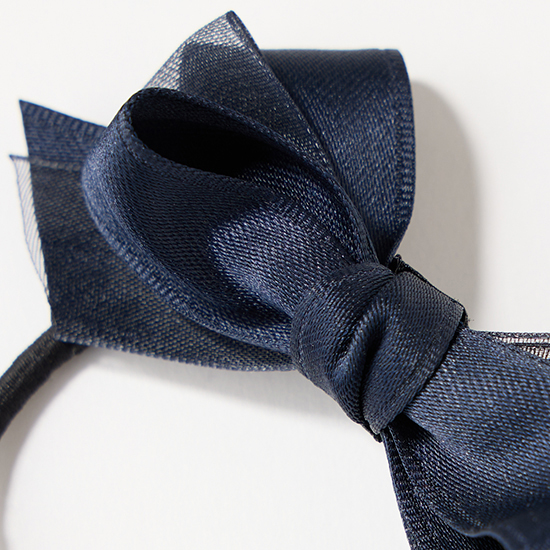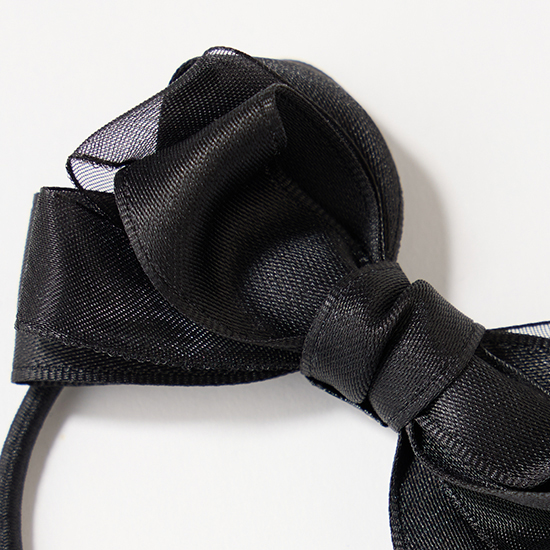 サテン地とオーガンジー素材をMIXした小さめのリボンで、普段使いからオケージョンまで幅広く活躍。