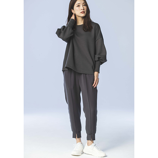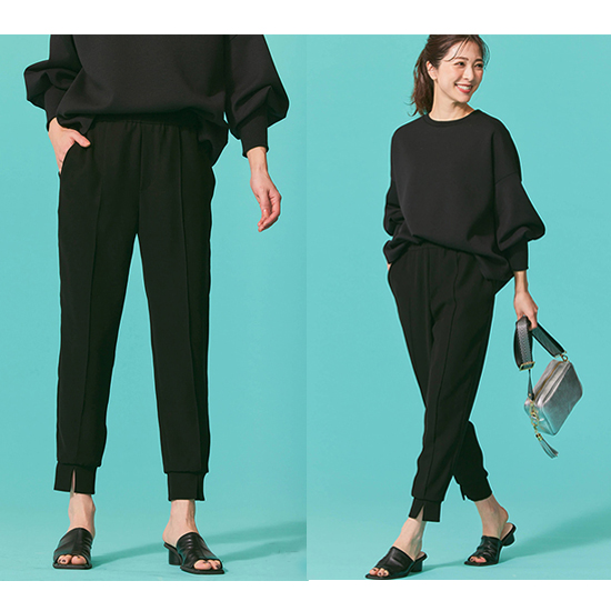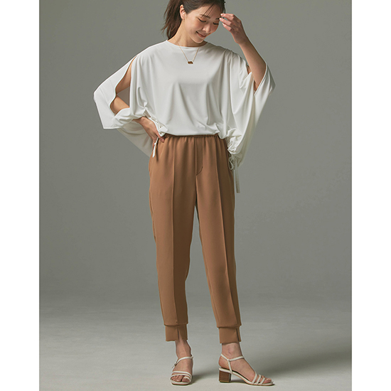 上品さとアクティブを兼ね備えたリラックス感と美脚を約束するシルエットはまさに究極の万能パンツと言えます。