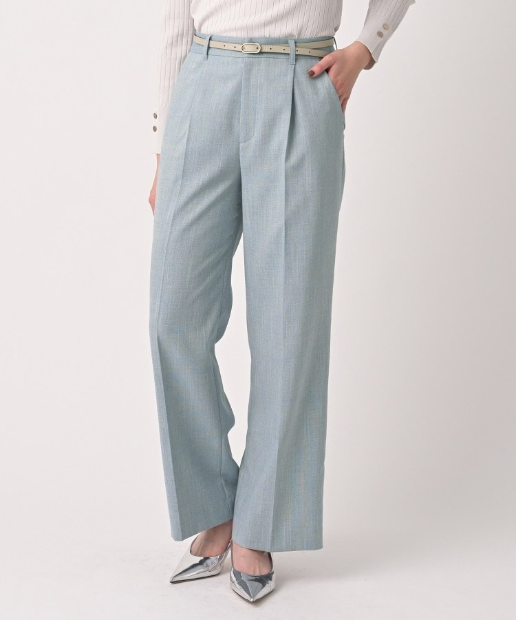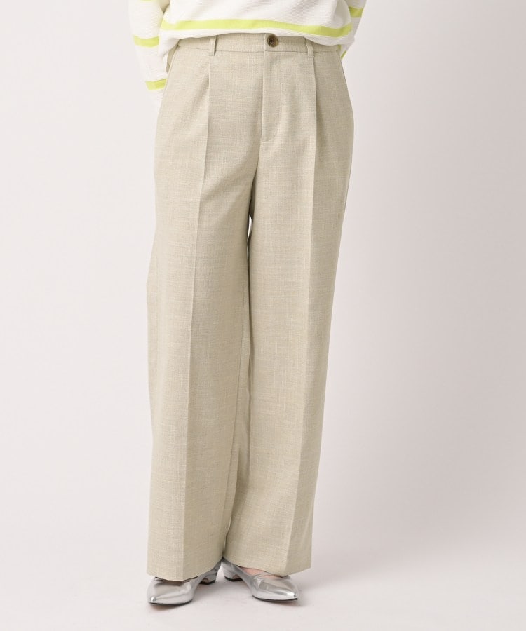 【デザイン】トレンド感たっぷりのタックワイドシルエットに、快適な穿き心地をプラス。デニム見え素材が、上品で動きやすい軽快な1本を叶えます。普段使いからオフィスカジュアルまで、どんなシーンにもフィットするパンツです。【素材感】デニム見えのような表情感が特徴。麻混にする事による適度なドライタッチ、先染めによる柔らかさと軽さもポイントです。【着こなしポイント】表情感のあるパンツなのでシンプルなトップスと合わせるとボトムの存在感が引き立ちます。【仕様】・ポケット数:横×2 後ろ×2・前ファスナー・ウエスト後ろゴム・裏地なし※照明の関係により、実際よりも色味が違って見える場合があります。また、パソコン・スマートフォンなどの環境により、若干製品と画像のカラーが異なる場合もございます。