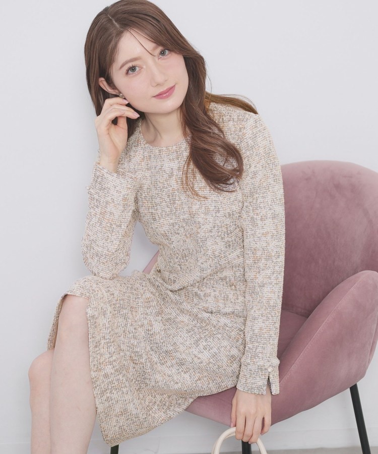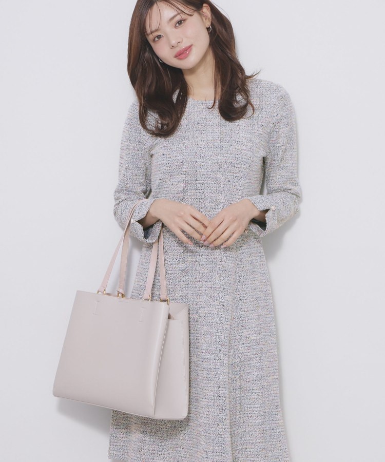 ラメ混のミックスツィードがエレガントなパネルフレアワンピース【デザイン】・ミックスツィード素材で作られたフレアワンピースは、エレガントな雰囲気を醸し出します。・パネルラインの美しいフレアシルエットが女性らしく、動くたびにしなやかさを演出。・シンプルながらも上品なリボンバックデザインで、後ろ姿も魅力的に仕上げています。・スリーブは適度なボリュームを持ち、トレンド感のあるスタイルを実現。・オフィスや特別な日にも対応した、シーズンレスで活躍するアイテムです。【素材】・ミックスツィードの素材感が、シンプルだけど存在感のあるスタイルに。・複数の色調が織り交ぜられており、上品なコーディネートを引き立てます。・ストレッチ性があり、動きやすさをサポートしながら快適な着心地を提供。・イージーアイロン機能により、忙しい朝でもシワを気にせず美しい仕上がり。・ハンドウォッシャブルで、家庭での洗濯が可能な嬉しい仕様。【仕様】・ポケットなし・裏地なし※照明の関係により、実際よりも色味が違って見える場合があります。また、パソコン・スマートフォンなどの環境により、若干製品と画像のカラーが異なる場合もございます。