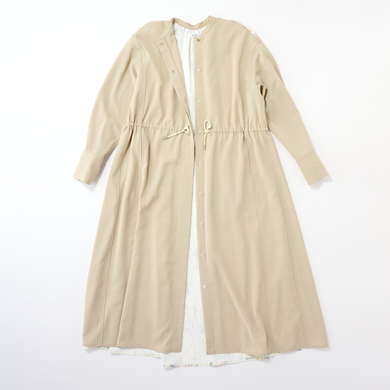 フロントを開ければライトコートとして、閉じればワンピースとして着られる2WAY仕様。