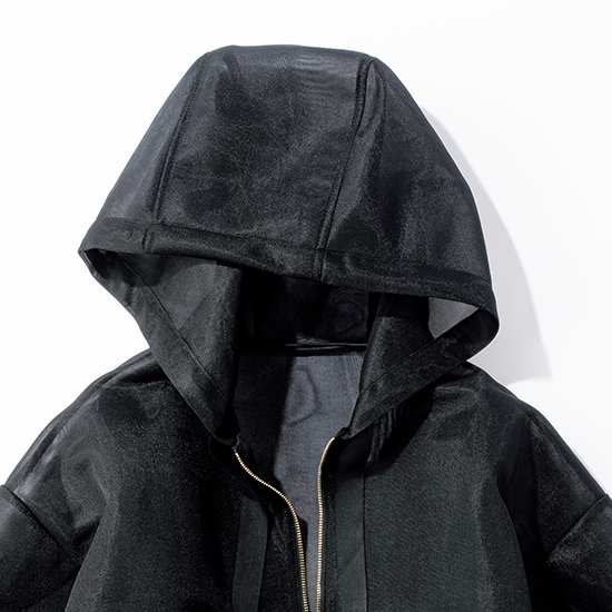 裏毛のフーディと違い透け感のあるダンボール素材は何より軽い。