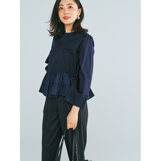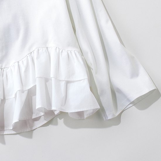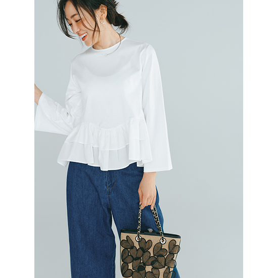 カジュアルさと華やかさを両立 裾フリルトップス