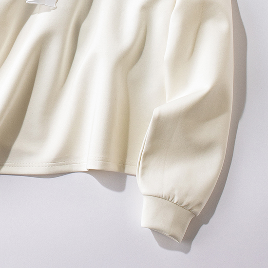 フロント、バックスタイルからもオーバーカラーの存在が目を引くトップス。