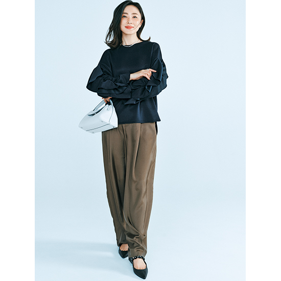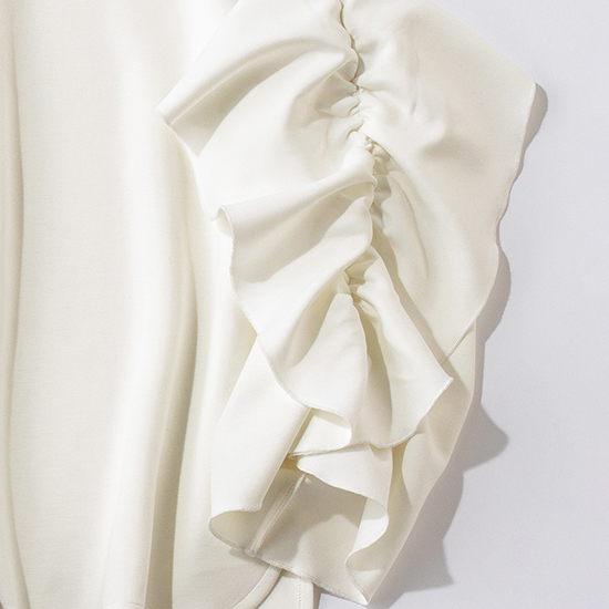 ・スウェット素材でも袖の立体フリルのお陰でエレガントな表情に