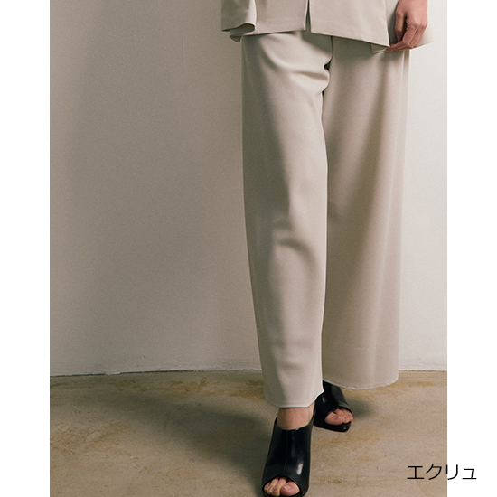 <p><font color="#c31941" size="3">バイアス方向にパターンをとることで、落ち感を生み出したエフォートレスパンツ。</font><br />