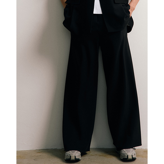 スラっと縦見えで、スタイル良く映えます。デイリー使いしやすいワイドパンツに仕上げました。<br />