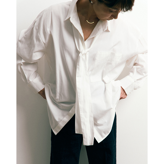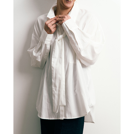 程よいカジュアル感と上品さを兼ね備えた、大人のためのボウタイシャツ